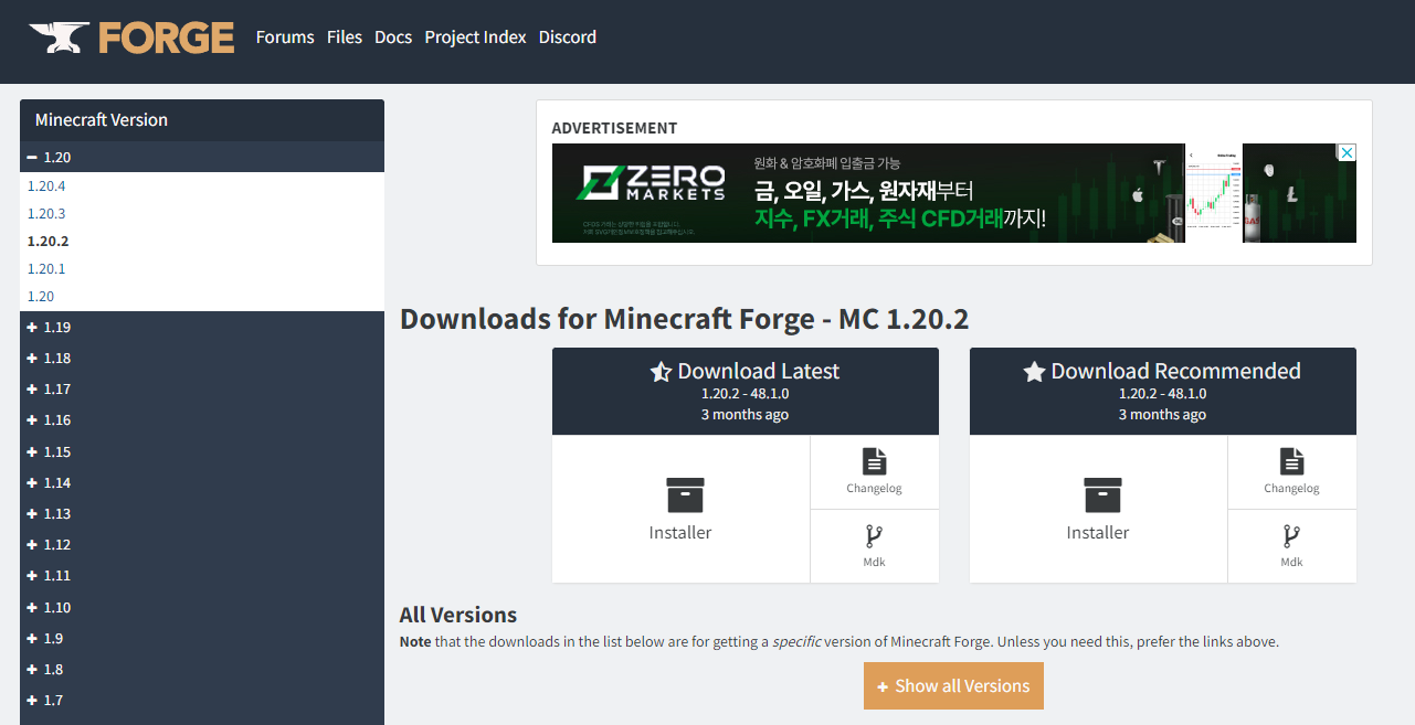 2. Forge 다운로드하여 설치하기